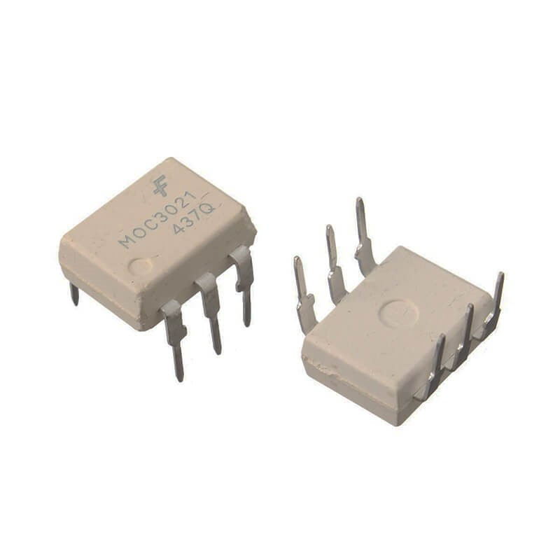 MOC3021 is Triac driven a zero-crossing optocoupler. Optocoupler is made of light-emitting and light-sensing devices with no internal connection except light bean. The optoisolators allow two circuits to exchange signal without making any electrical connection. This device works on the principle that light is proportional to signal and the signal is transferred to a phototransistor. It is used as solenoid, valve control, light dimmers, motor speed controller and as a perfect solid state relay.